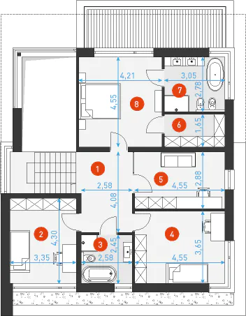 Каркасно-панельный дом с террасой AET-194Общая площадь78,40 м²Жилая площадь46,80 м²Полезная площадь66,80 м²Площадь застройки53,00 м²Стоимость от3 780 000 руб