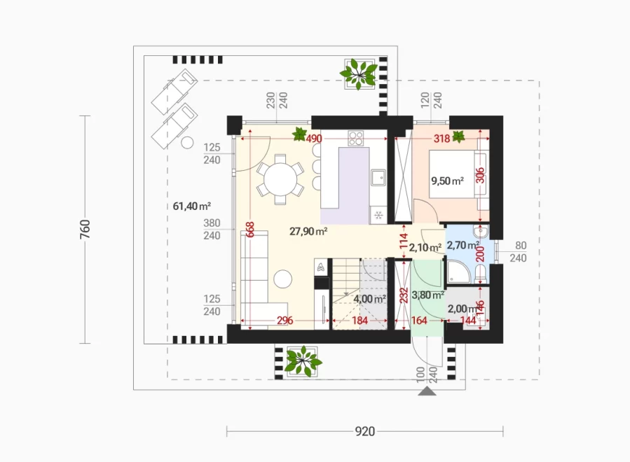 Каркасно-панельный дом с террасой AET-194Общая площадь78,40 м²Жилая площадь46,80 м²Полезная площадь66,80 м²Площадь застройки53,00 м²Стоимость от3 780 000 руб