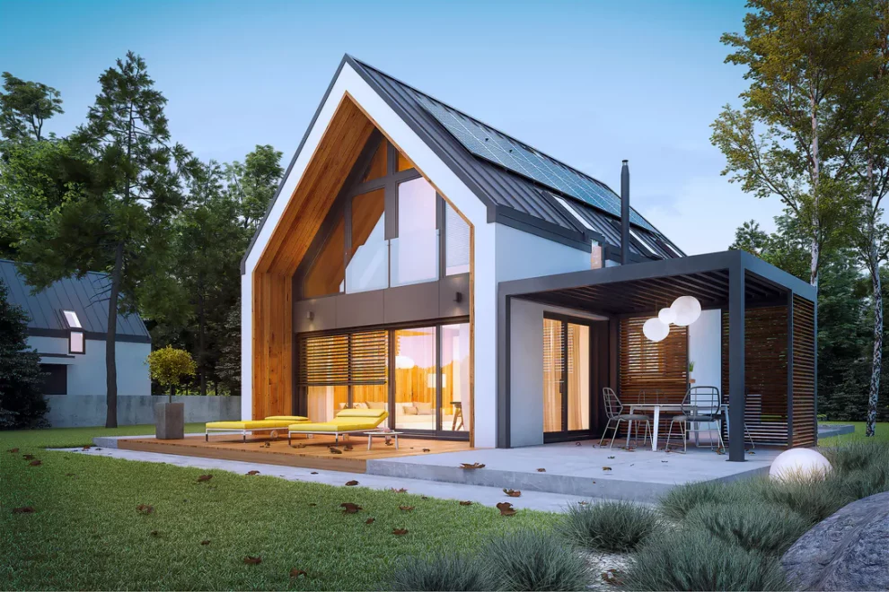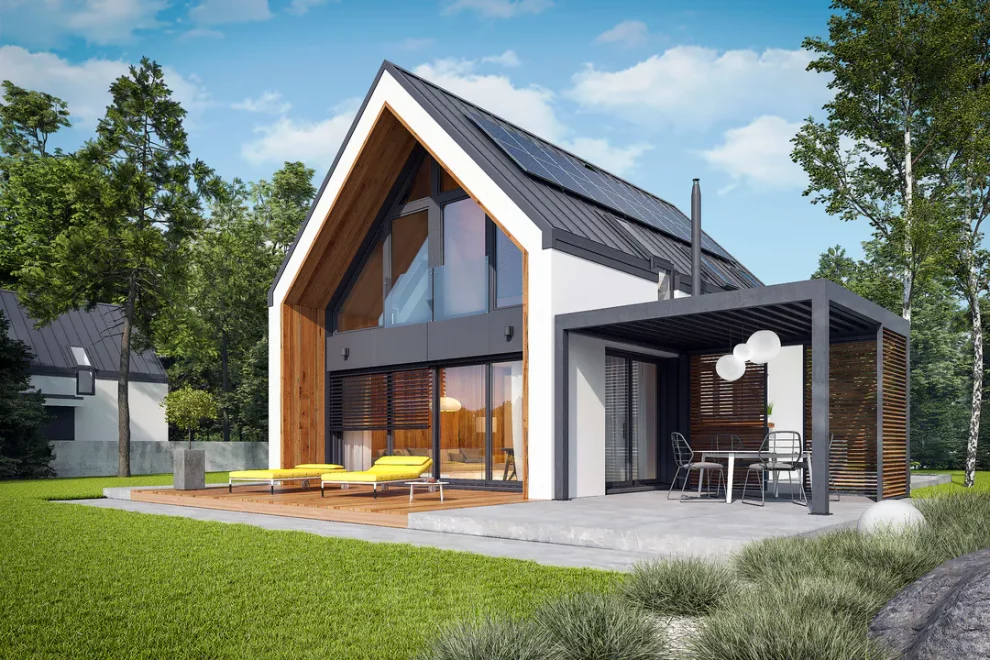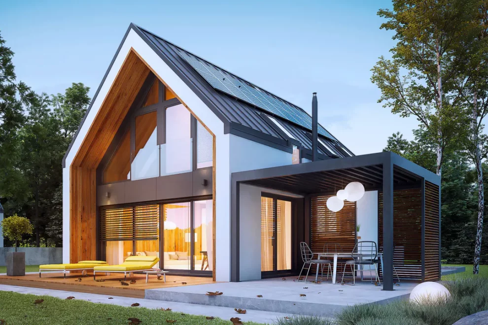 О проекте Каркасно-панельный дом с панорамными окнами AET-245