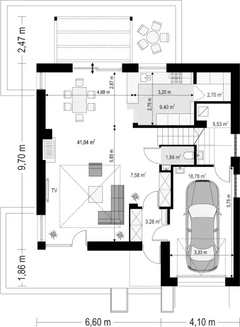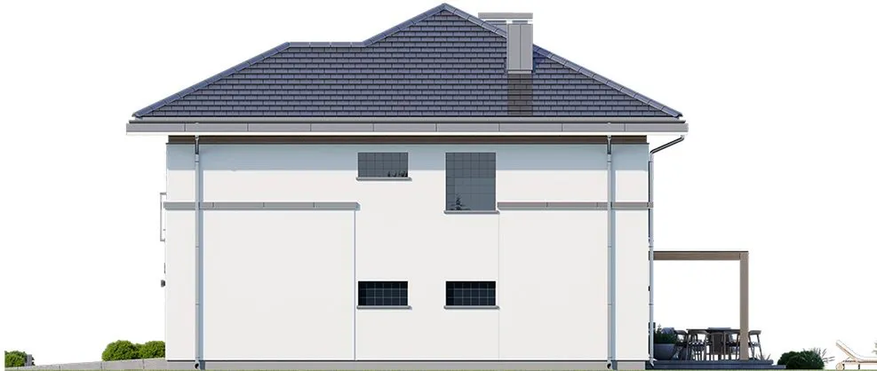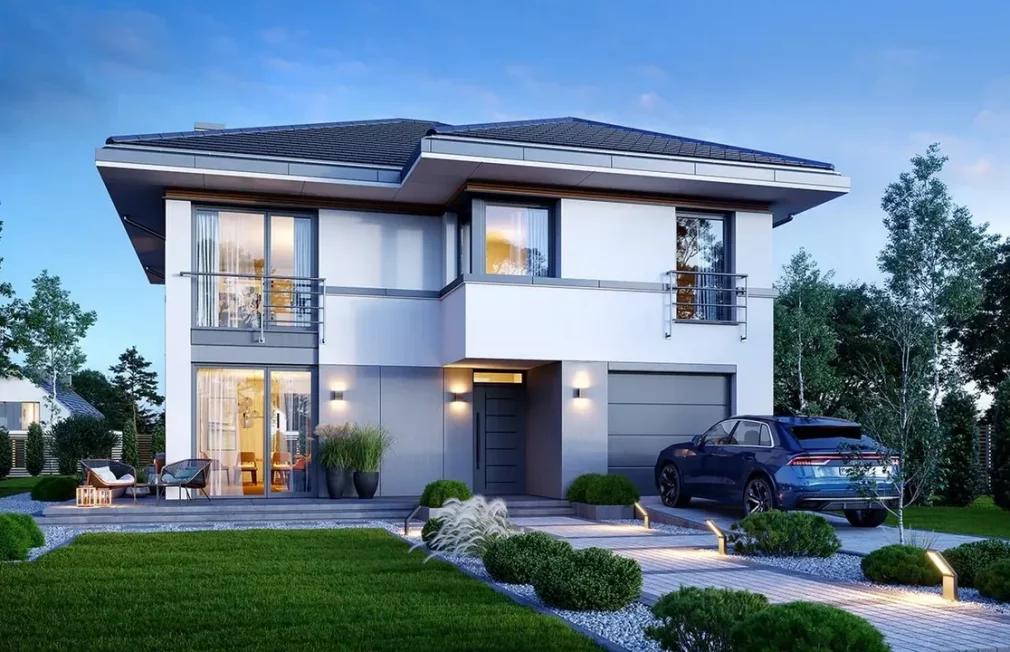 Проект AET-248 представляет собой современную интерпретацию городской мини-виллы, созданную для тех, кто ценит статус и функциональность. Этот двухэтажный дом спроектирован на квадратном плане и увенчан элегантной четырехскатной крышей, что придает зданию архитектурную завершенность. Контрастная отделка фасада в белых, серых и графитовых тонах подчеркивает его динамичный характер, а встроенный одноместный гараж делает эксплуатацию дома максимально удобной в условиях плотной застройки.