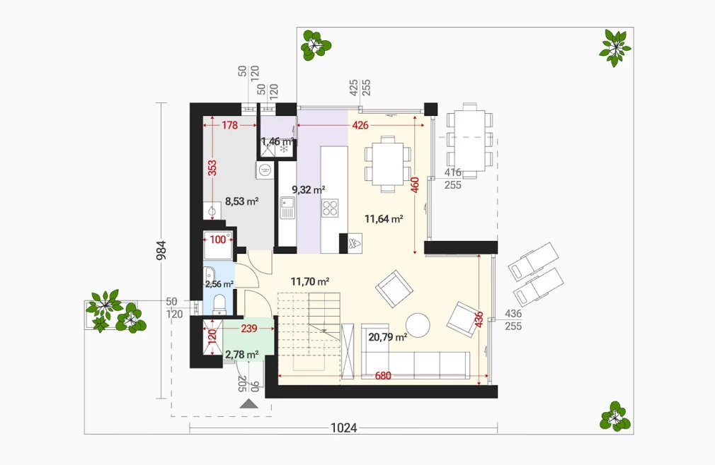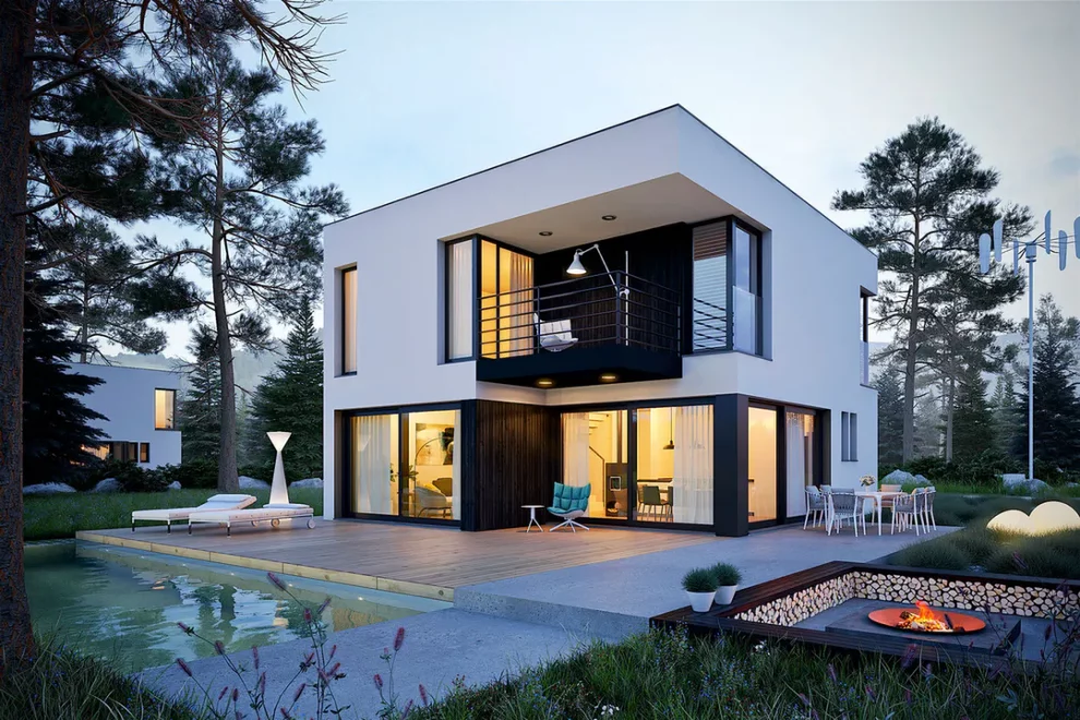 Проект AET-256 — это архитектурный манифест современности, воплощенный в строгой и стильной форме куба. Здание в духе минимализма идеально подходит для городской застройки, где ценится каждый метр участка. Плоская кровля и лаконичная геометрия фасадов делают этот двухэтажный дом заметным и актуальным, а компактное пятно застройки позволяет разместить его даже на очень ограниченной территории. Это выбор тех, кто предпочитает эстетику модернизма в сочетании с высочайшей функциональностью.