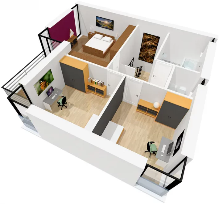 Второй этаж полностью отведен под ночную зону, обеспечивая жильцам максимальную приватность. Здесь запроектированы три просторные жилые комнаты, включая впечатляющую главную спальню. Наличие раздельного санузла и полноценной ванной комнаты на этаже гарантирует отсутствие утренних очередей и комфорт для всех членов семьи. Этот проект дома 2 этажа доказывает, что даже при небольших габаритах можно создать пространство, полное света и свободы. Каркасная технология возведения обеспечит дому долговечность и отличные энергосберегающие показатели.