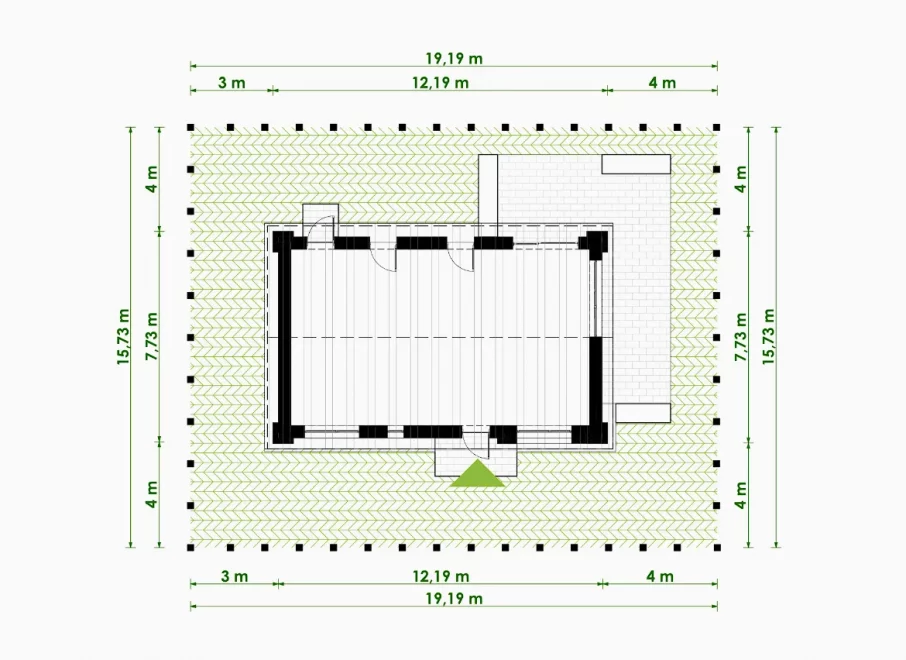 Входная группа с тамбуром помогает сохранить тепло и создать аккуратное разделение между улицей и жилой частью дома. Центральный холл объединяет все помещения, обеспечивая удобную навигацию без длинных коридоров. В проекте предусмотрено несколько жилых комнат, которые могут использоваться как спальни, детские или рабочие кабинеты — в зависимости от образа жизни владельцев.