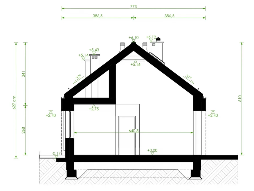 Общая зона представлена гостиной, объединённой со столовой, — это светлое пространство для отдыха, приёма гостей и семейного общения. Кухня выделена в отдельное помещение, что делает процесс приготовления пищи более комфортным и сохраняет порядок в жилой зоне. Также в доме предусмотрено техническое помещение, позволяющее удобно разместить инженерное оборудование.